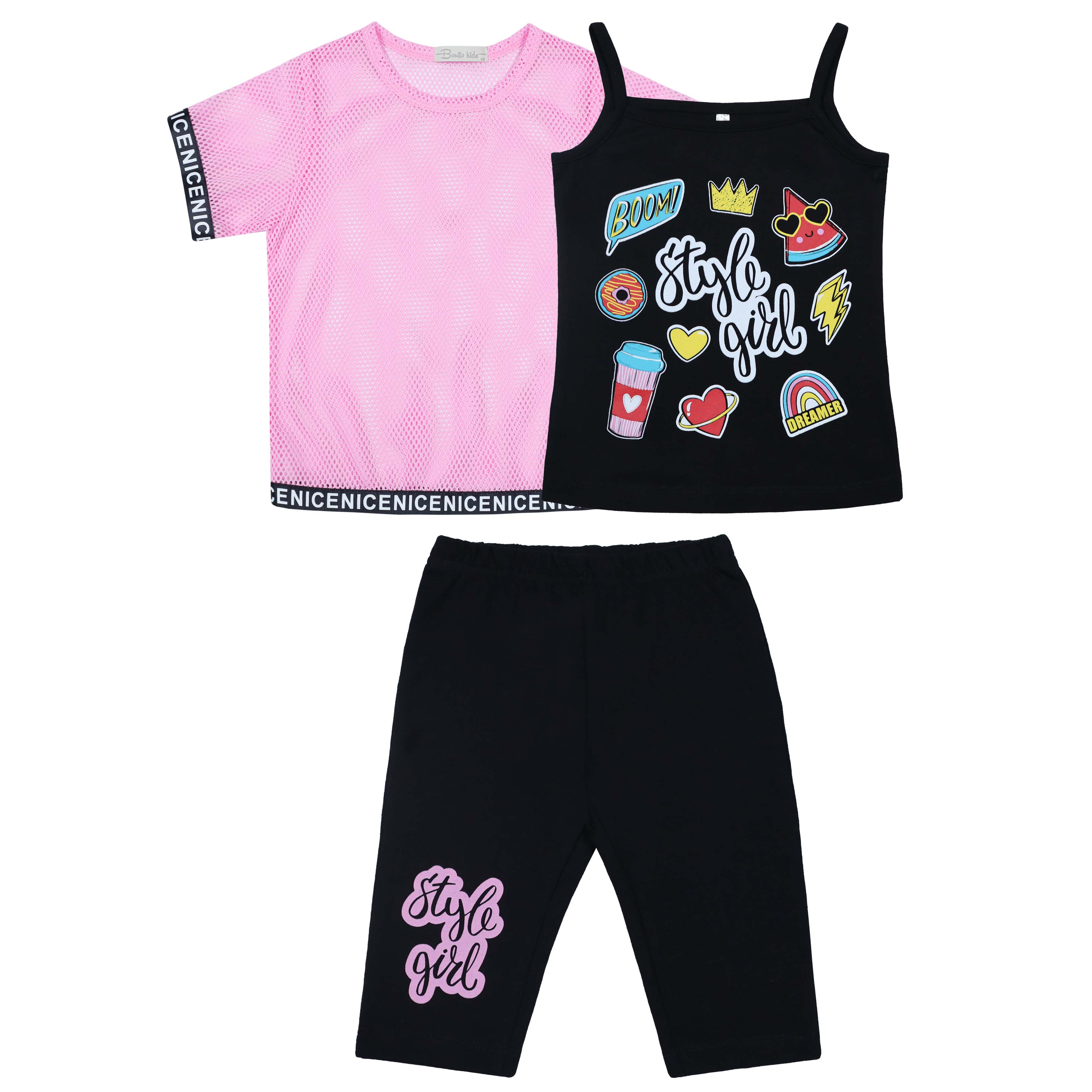 ЧЗ Комплект для девочки (футболка, бриджи, майка) 3-7 лет 92% хлопок, 8% лайкра BONITO KIDS/BK1608KP(ЧЗ)/уп.5шт./меш.300шт.